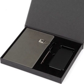 İçerik: Smart 13x21 Defter, 1045 - 10.000 mAh Powerbank, 3235 - Metal Roller Kalem